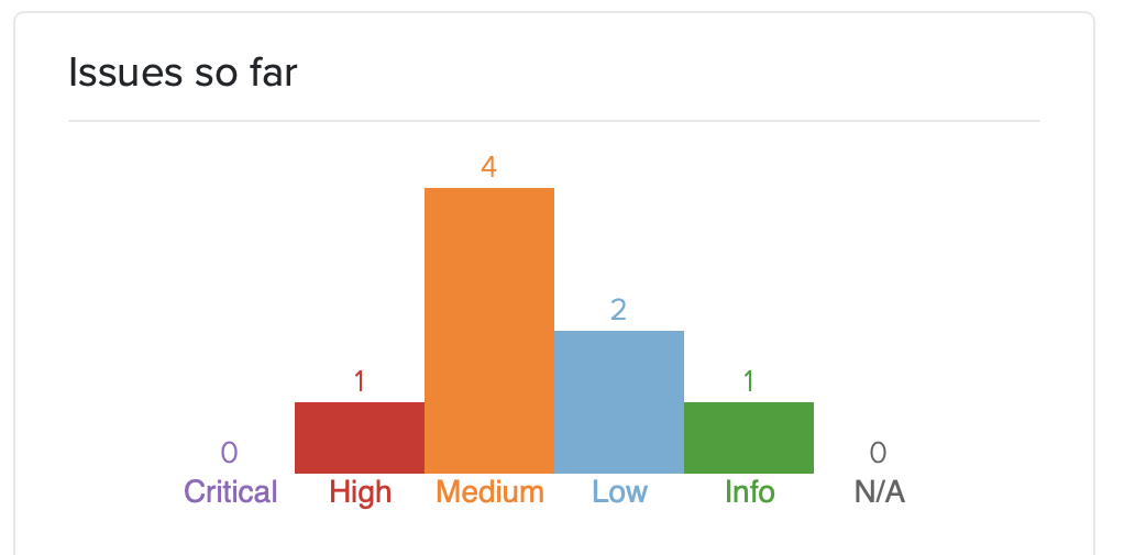 The audit surfaced eight issues. Severities spread from CVSS High down to Info. Click for more details: