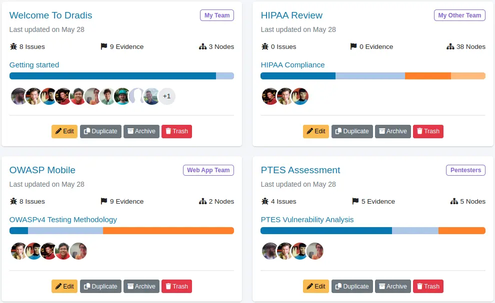 Stay organized and generate reports from unlimited projects in Dradis Pro.